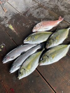 雨の影響で海水濁ってサイトで釣るのが難しいかったようです!